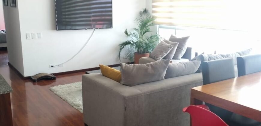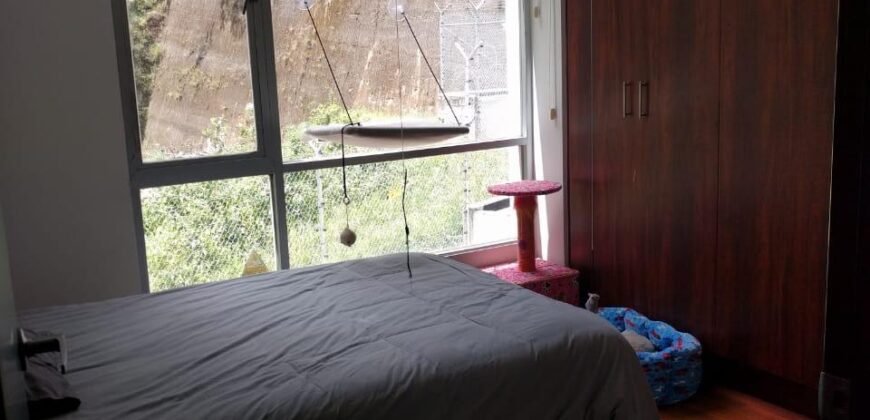 Se vende departamento sobre CC El Bosque, superficie de 90m2, 3 habitaciones, 2 y medio baños, sala, comedor, cocina estilo americano, bodega (5m2) y parqueadero. El conjunto cuenta con áreas verdes, ascensores, guardianía 24h. El precio es de 115k negociables.