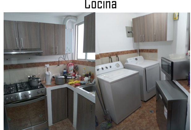 Sala comedor, cocina con lugar para lavadora y secadora.