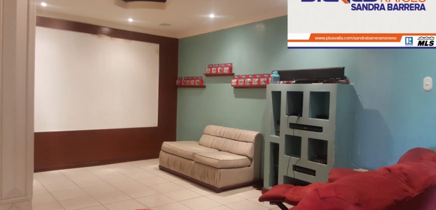• PLANTA ALTA: Dormitorio master amplio con walk in closet y baño privado con tina, amplia sala de cine en casa con proyector de video empotrado y medio baño. Dormitorio de niña con baño privado y dos dormitorios que comparten un baño completo. Total cuatro dormitorios.