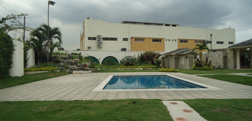 Area social, piscina, pérgola, vestidores y baños de piscina, casa del guardia, parqueaderos, cascada artificial y arreglos de jardines 400 m2.