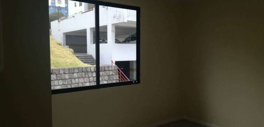 Alquilo bonito departamento de 2 dormitorios, 1 baño, sala / comedor, cocina americana, 1 parqueadero, lavandería. Edificio cuenta con ascensor, áreas verdes y seguridad 24/7