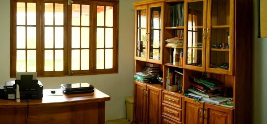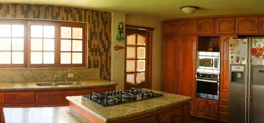 4 dormitorios, 5 baños, sala, comedor, cocina, cuarto de máquinas, cuarto de planchado, cuarto de estudio, sala para gimnasio.