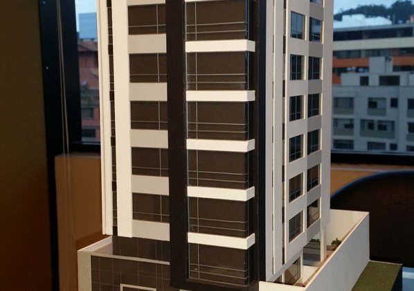 Edificio de 10 pisos con 24 departamentos y 1 local comercial.