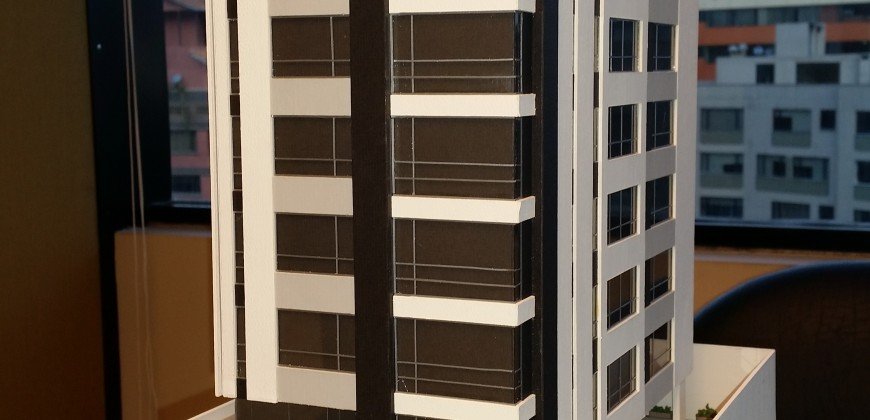 Edificio de 10 pisos con 24 departamentos y 1 local comercial.