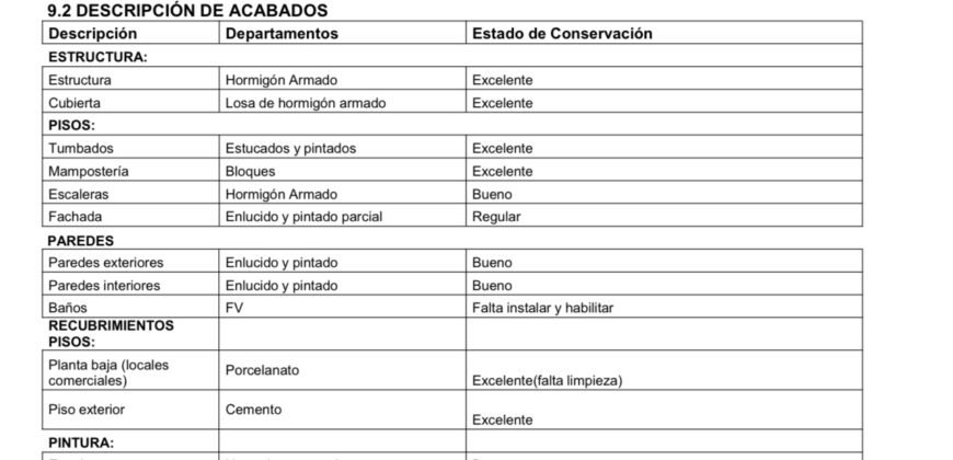 de servicio, educación y comercio. En el terreno se encuentra implantado una edificación con 3 departamentos y 2 locales comerciales.