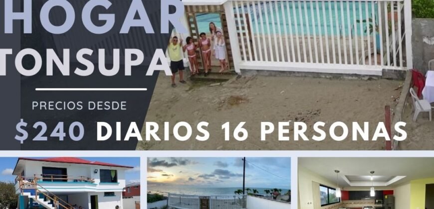 Disfruta de una experiencia única en la playa con esta espectacular casa en Tonsupa, con capacidad para alojar hasta 16 personas. Perfecta para unas vacaciones inolvidables o para ser tu hogar permanente.