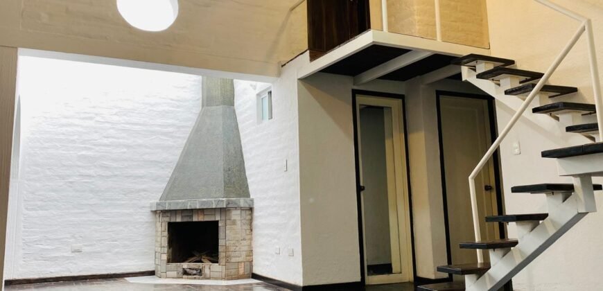 En Conocoto. Cómoda Casa Estilo Mediterráneo, dentro de conjunto privado, SIN pago de alícuotas. Chimenea, Estudio, Cocina amplia con muebles altos y bajos; 3 dormitorios, 2 baños completos, parqueadero con portón eléctrico, jardín delantero y patio posterior.