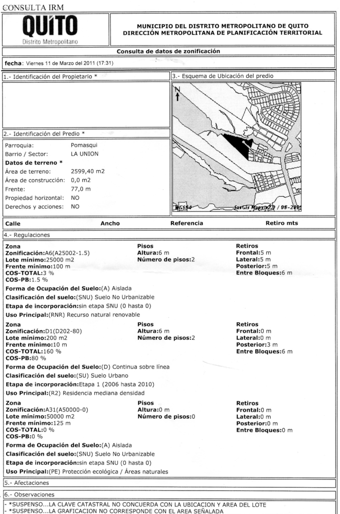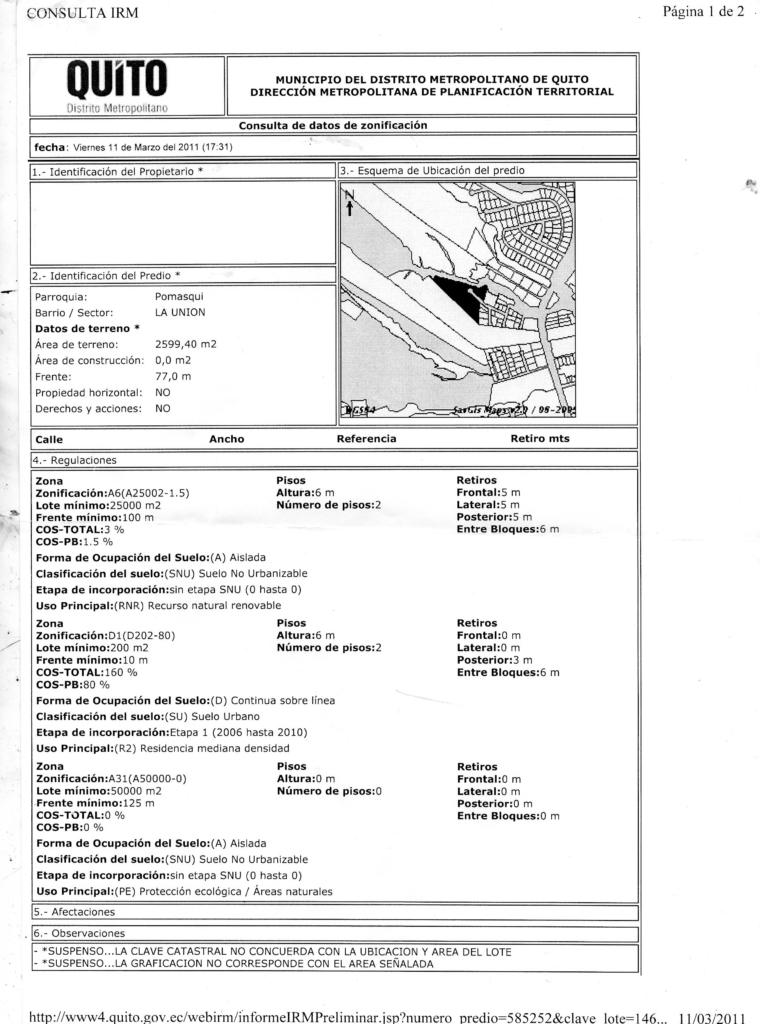 ADJUNTO: IRM y Plano parcial del terreno