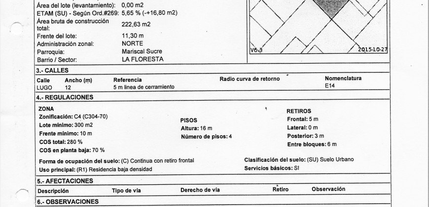Terreno de 300 m2 en magnifica ubicacion, a buen precio, buena oportunidad dispone de construccion con potencial para ocupacion para bodega, oficinas o vivienda, ubicado en la calle lugo y barcelona – sector la floresta . Quito
