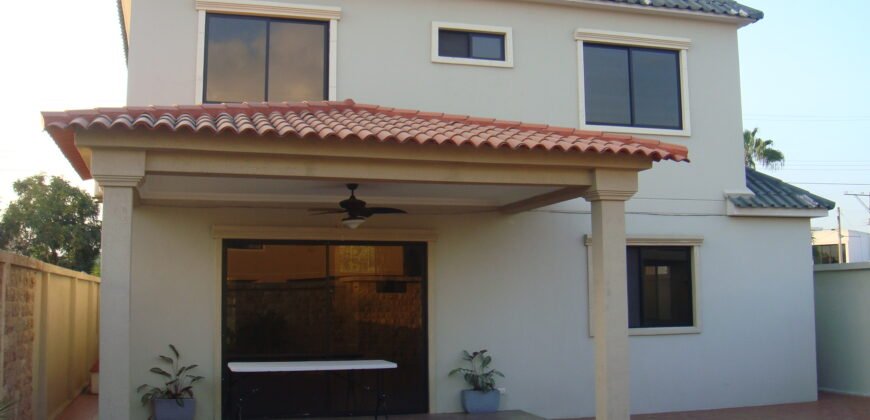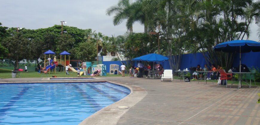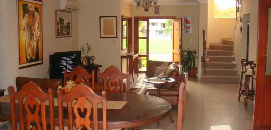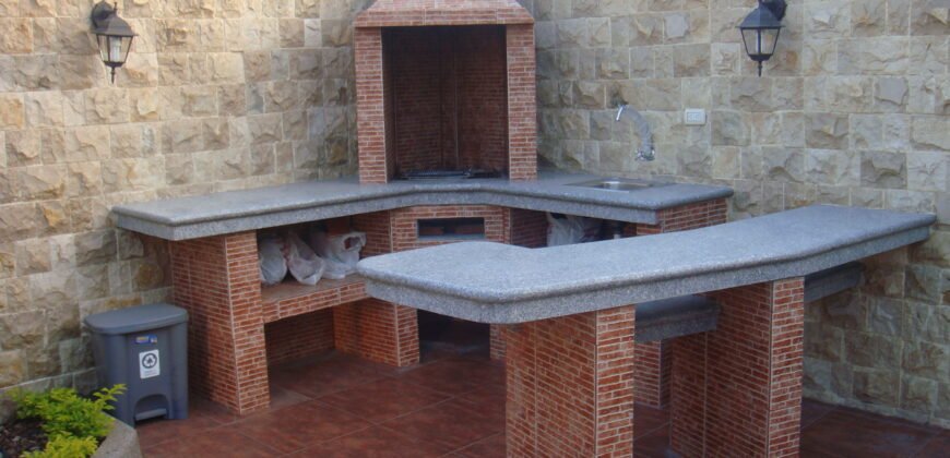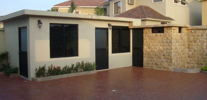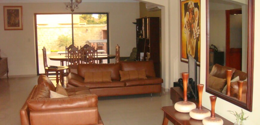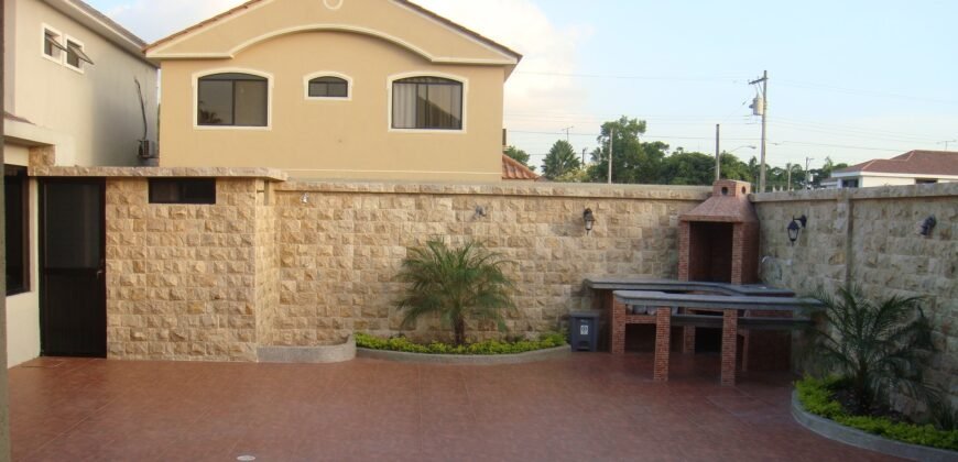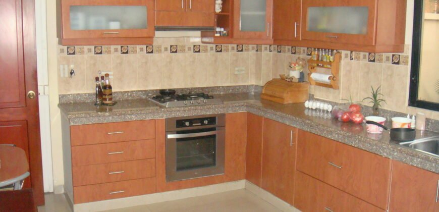 Comprende: 5 dormitorios, 4 baños, amplia sala – comedor, bar, estudio, terraza al patio, bella área social posterior, patio con BBQ – parrilla con mesones de granito.