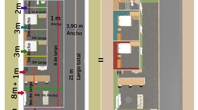 Área de lavandería de : 3,90 m2 de Ancho y 21 m2 de largo.